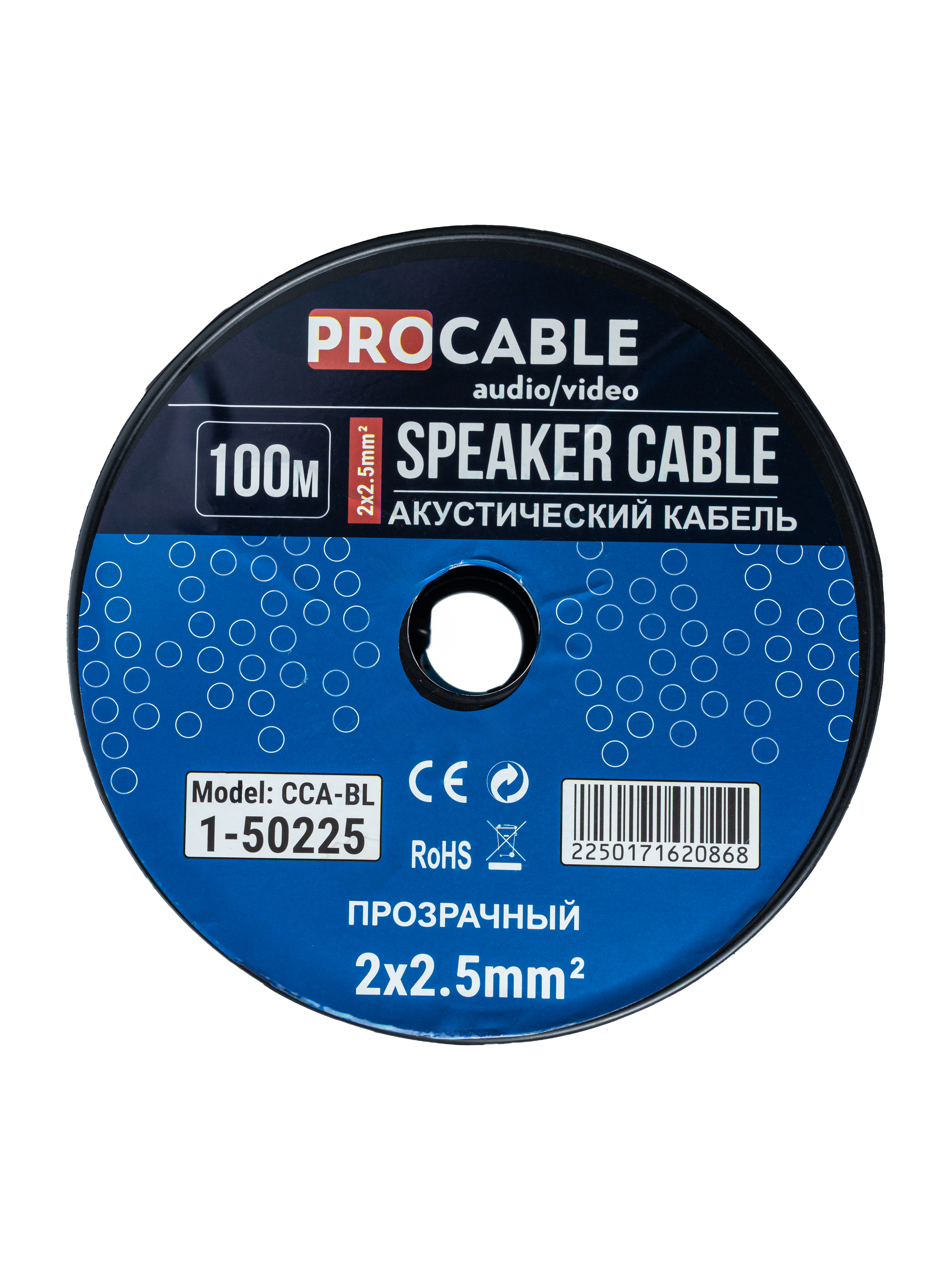 Мощный звук и эстетичная инсталляция акустического кабеля PROCABLE-AV 2 х 2,5 мм² CCA (Copper Clad Aluminium) прозрачный (1-50225).