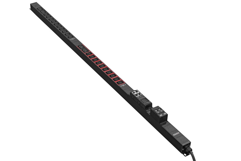 Однофазный блок HE1V-20A4B-32A-QM-30Z с функцией удаленного мониторинга по входу предназначен для распределения электропитания в телекоммуникационных шкафах и стойках. Выполнен в алюминиевом корпусе, представляет собой группу из 20 розеток C13 и 4 розеток C19 с автоматическими выключателями. Вход питания – кабель питания с вилкой IEC 60309.