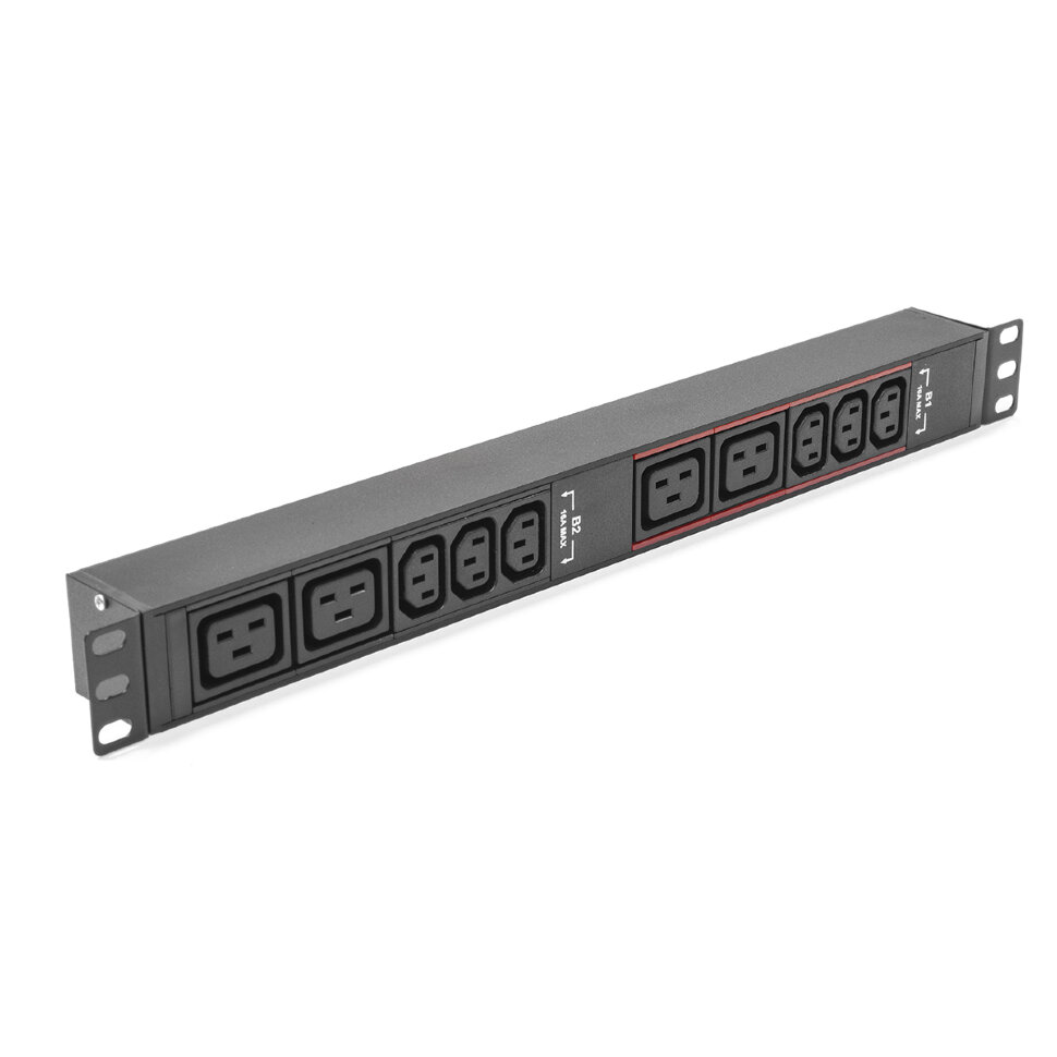 Представляет собой группу из 6 розеток IEC 60320 C13 и 4 розеток IEC 60320 C19. Вход питания - клеммный терминал. Горизонтальные PDU соответствуют стандарту 19”. Блок сетевых розеток предназначен для распределения электропитания между оборудованием, установленным в телекоммуникационных шкафах и стойках.
