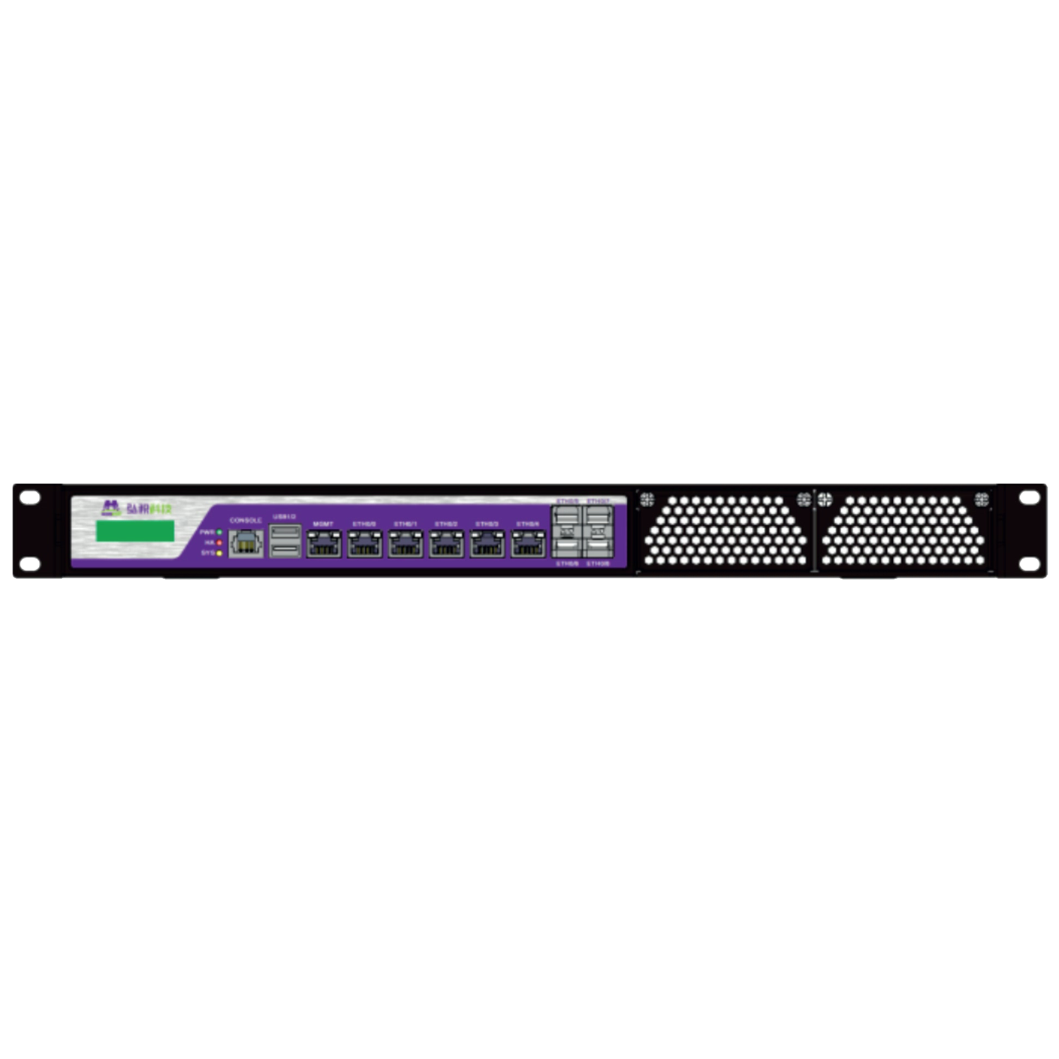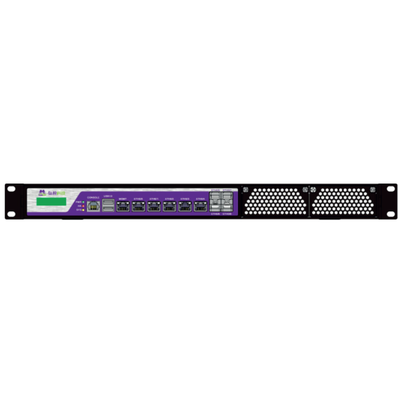 Устройство предлагает множество портов для подключения: шесть RJ45 портов на 1 Гбит/с, четыре оптоволоконных порта на 1 Гбит/с и два порта на 10 Гбит/с. Также имеются два USB-порта и один консольный порт, что делает его универсальным решением для различных сетевых задач.